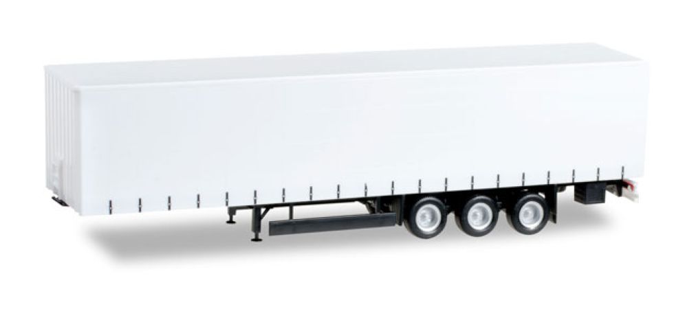Modèle réduit Herpa finement détaillé représentant une Remorque Krone avec rideau de toile 3 essieux de couleur blanc avec protection anti-encastrement.