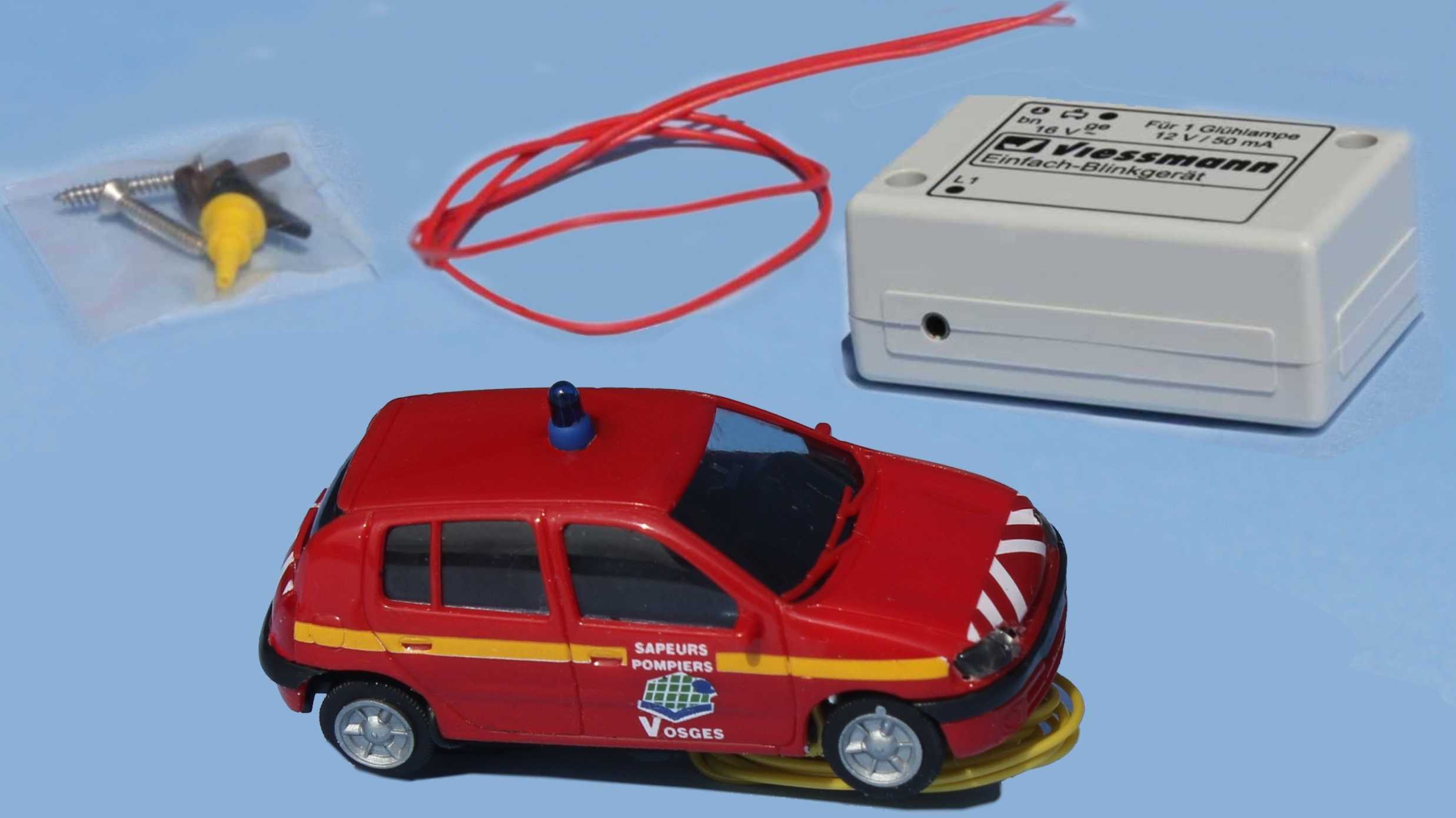 SAI 927 - Renault Clio 2 pompiers Vosges, gyrophare clignotant et phares éclairés