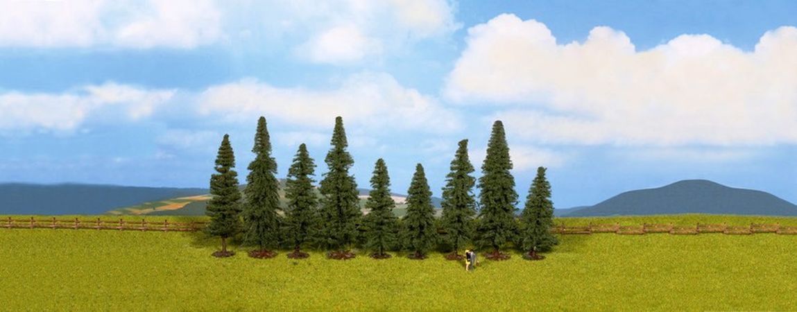 Sapins, 9 pièces d'une hauteur de 80 à 120 mm