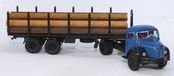Semi-remorque avec tracteur Berliet TLR 8 bleu, avec remorque transport de grumes et grumes