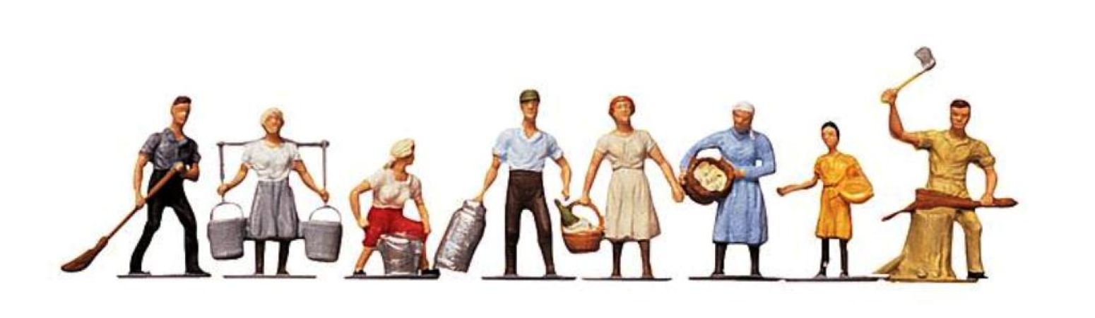 Figurines Faller représentant 8 personnages avec leurs ustensiles de ferme