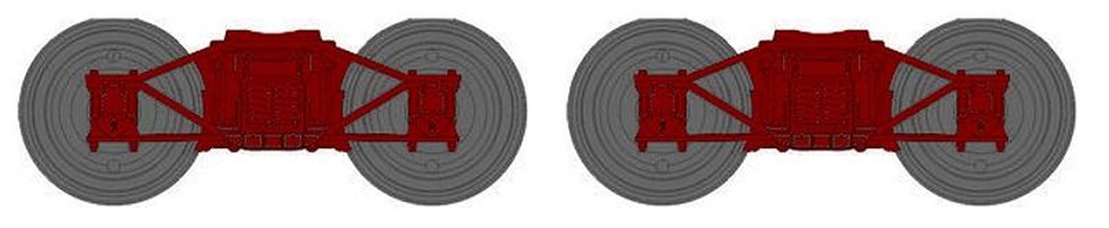 Boite de 2 bogies DIAMOND Brun UIC, Roues pleines, Poutre à ressort hélicoîdaux, Boites Symington