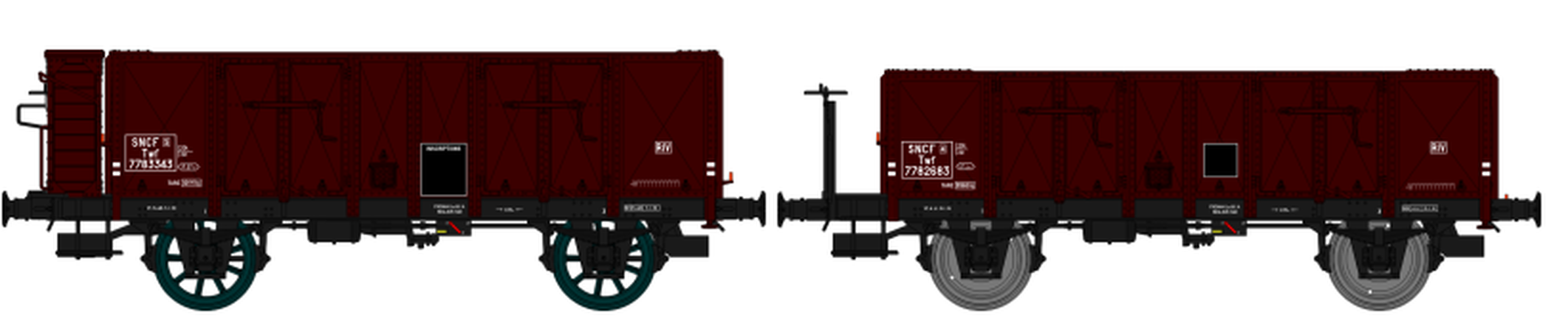 Set de 2 Wagons TOMBEREAU OCEM 29 Ep.III Type B Tôlé Plateforme ou Guérite