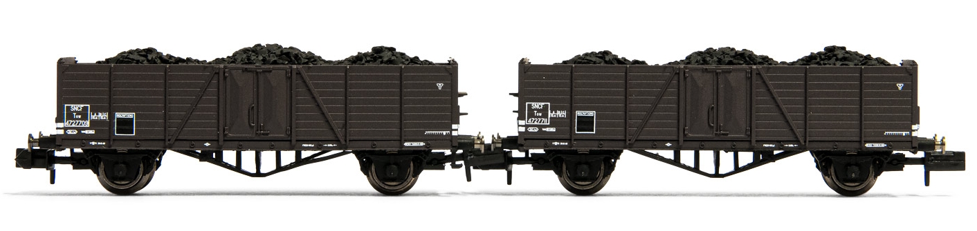 Set de 2 wagons tombereau Tow, chargé de charbon, SNCF