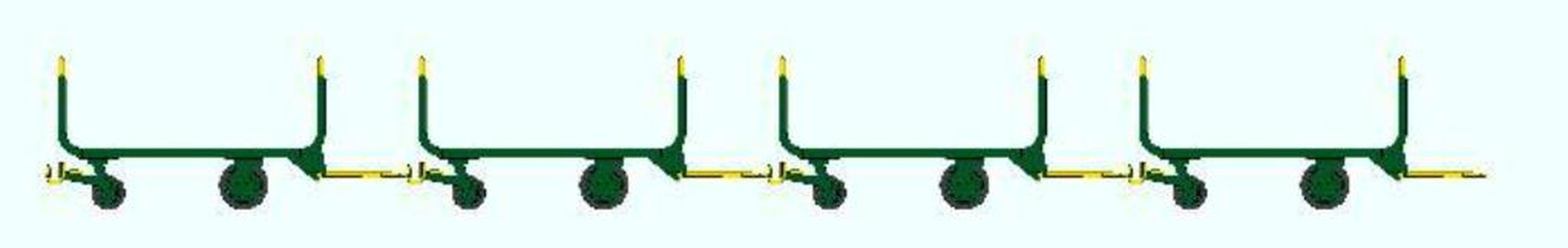 Set de 4 Chariots SNCF en tubes métal,Ep IV-V,Vert Jaune SNCF