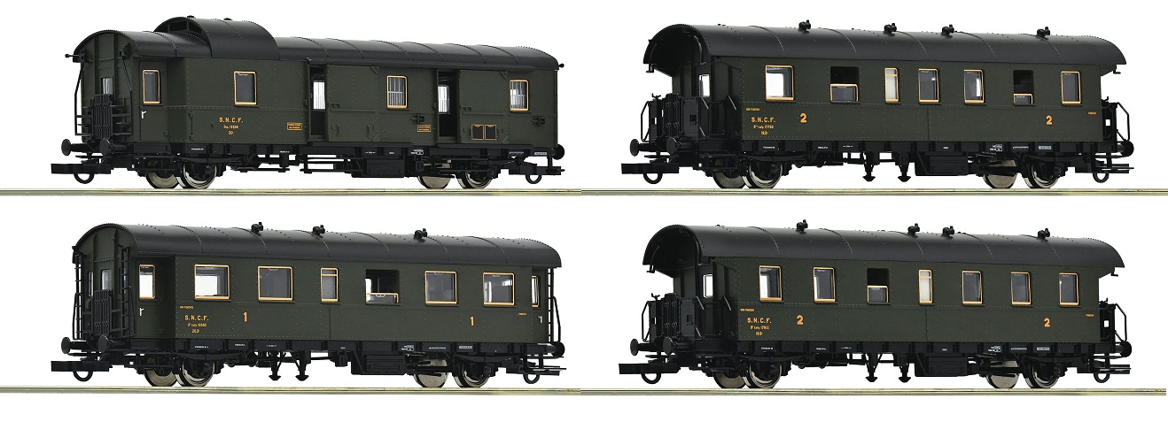 Roco 6200055 - Set de 4 voitures voyageurs boite à tonnerre, SNCF