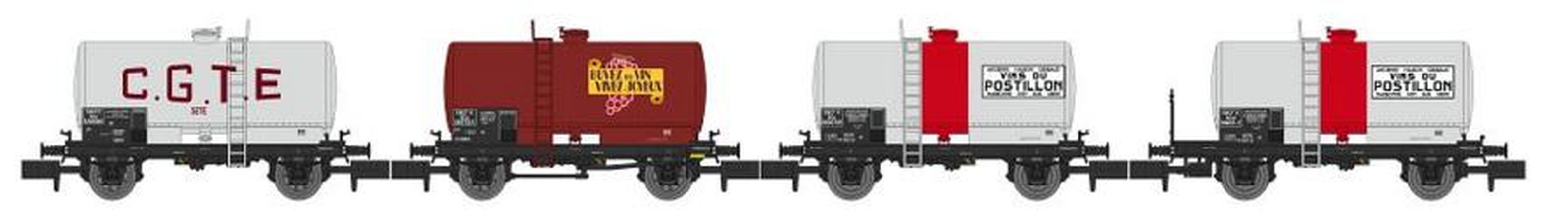 Coffret de 4 wagons citernes soudée avec les caractéristiques suivantes :