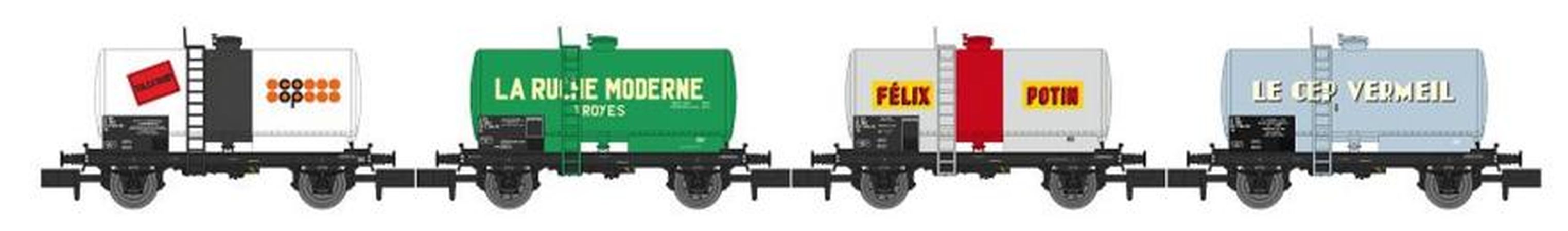 Coffret de 4 wagons citernes soudée avec les caractéristiques suivantes :
