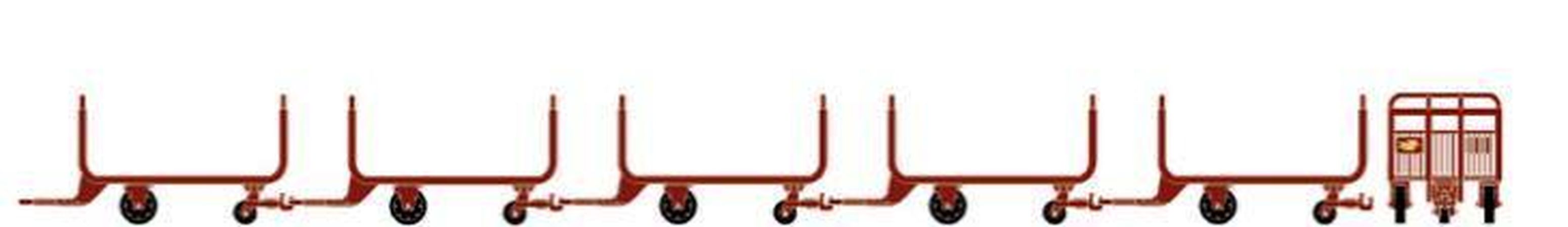 Set de 5 chariots postaux brun "PTT", Ep. IV, SNCF