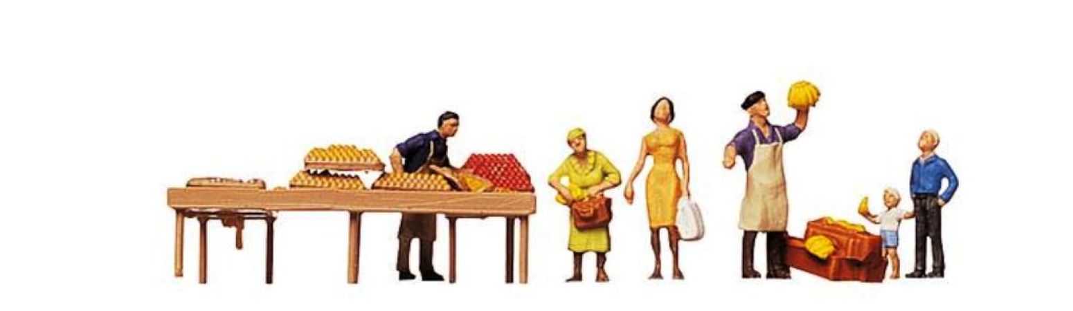 Figurines Faller se composant de 6 personnages (clients et vendeurs) et leurs accessoires
