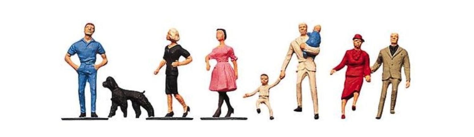 Figurines Faller représentant un lot de 8 personnages dont deux enfants et un chien