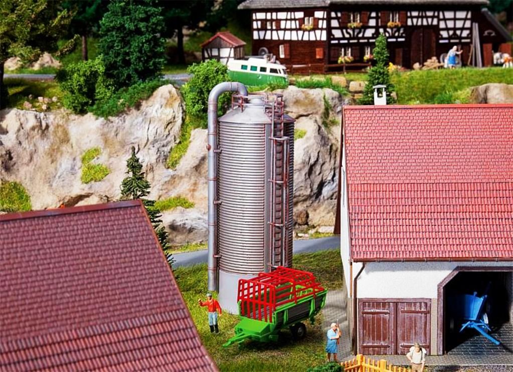 Silo en tôle ondulée réalisé dans l'optique de l'alimentation et de stockage du grain. Avec tube extérieur, échelle et rampes.