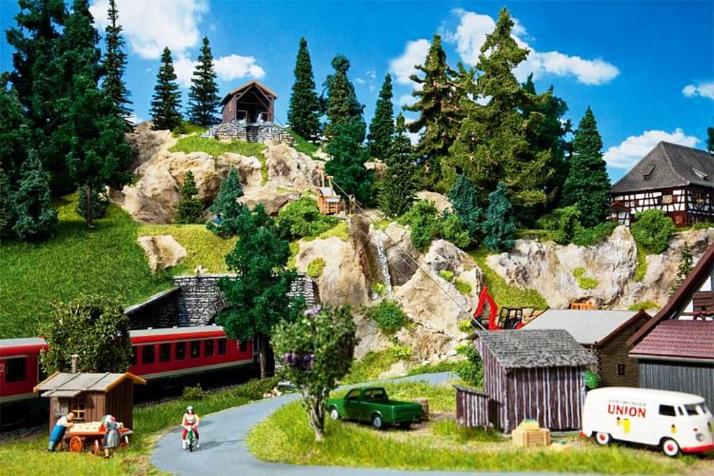Maquette Faller représentant un petit télécabine avec deux transport de gondoles différent pour une variété d'applications dans les zones montagneuses inaccessibles. Il peut être utilisé pour le transport de matériaux, aliments, etc ou le transport d'une personne seule.
