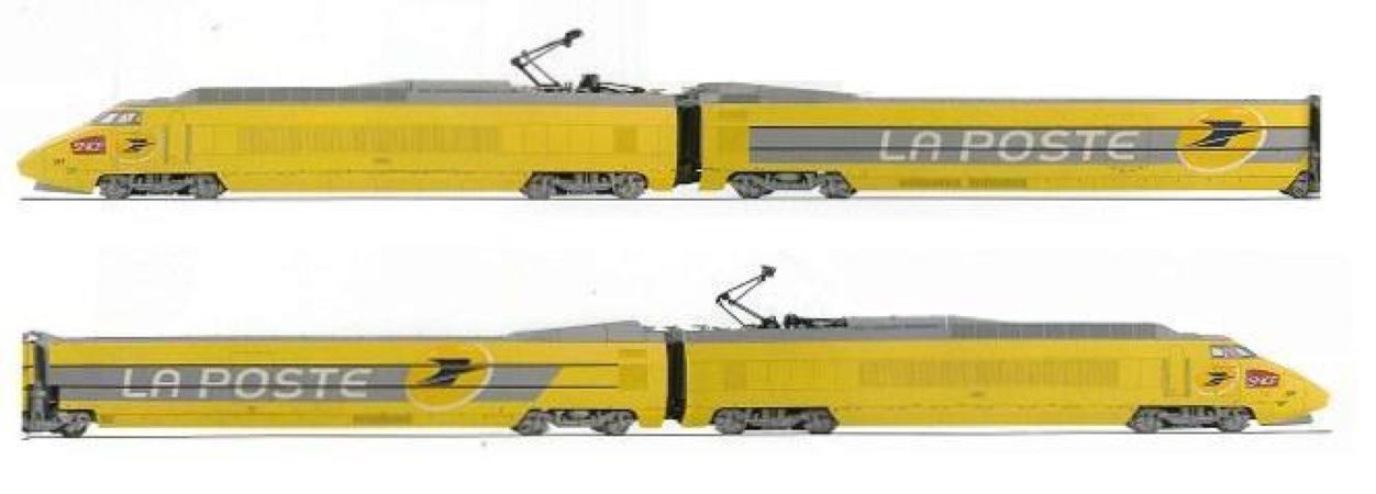 Les TGV postaux sont dérivés des TGV PSE (Paris Sud-Est), la suspension ayant été modifiée pour permettre un niveau constant des rames à quai en compensant l'affaiblissement dû à la charge. Le parc TGV postal est composé de 7 demi-rames qui permettent la disponibilité quotidienne de 3 rames complètes pour assurer le transport nocturne de courrier et colis sur LGV. Les motrices du TGV postal sont parfois employées comme motrice de secours sur des rames voyageurs PSE.