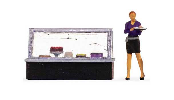 Noch 16510 - Tiny-Scenes « Comptoir à gâteaux » : Employé et vitrine réfrigérée