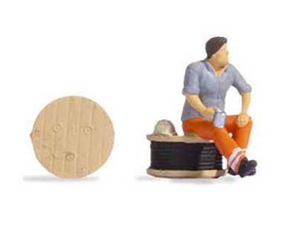 Noch 16530 - Tiny-Scenes « Pause café » : Ouvrier assis sur touret de câble
