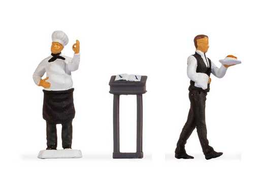 Noch 16512 - Tiny-Scenes « Restaurant » : Cuisinier, serveur et pupitre avec menu