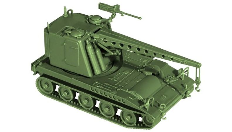 Véhicule léger militaire Roco de l'arméé US représentant Véhicule blindé Recovery M578 équipé d'une grue et de mitrailleuse Cal 50