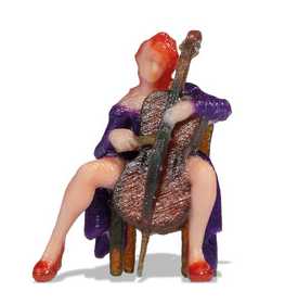 Proposée sous la référence Noch 10410, cette figurine représente un violoncelliste assis sur sa chaise entrain de jouer du violoncelle.