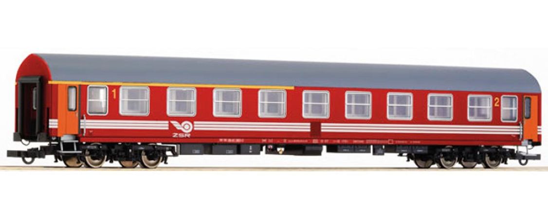 Modèle réduit Roco représentant une voiture pour train rapide 1ère/2ème classes de type Y/B-70 des Chemins de fer de l’État slovaque.