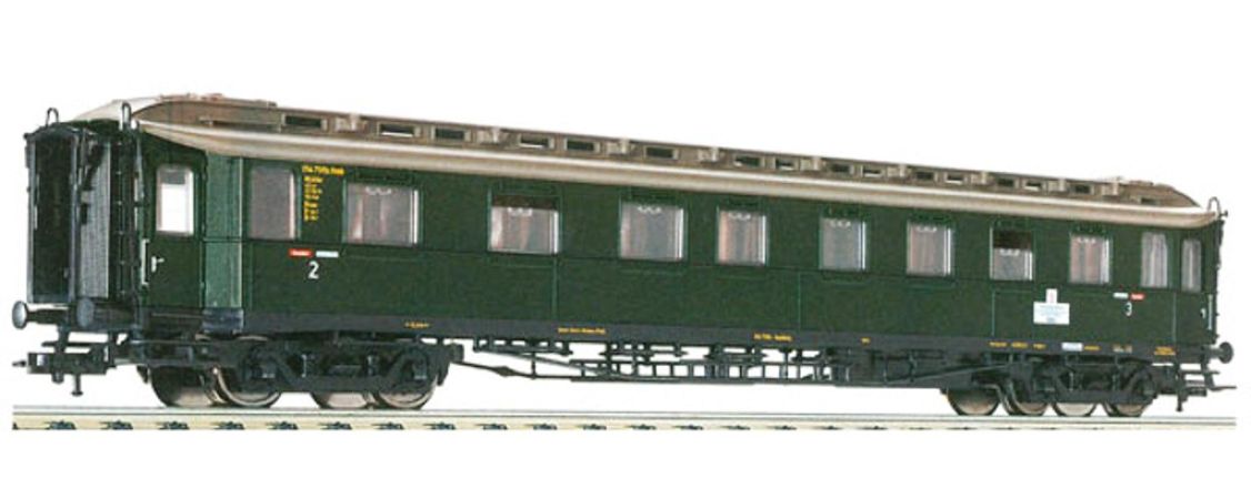 Modèle réduit Fleischmann représentant un voiture voyageur 3ème classe des compagnies de chemin de fer Belge.