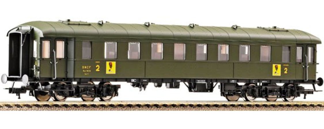 Modèle réduit Fleischmann finement détaillé représentant une voiture voyageurs Bastille 2ème classe de la SNCF