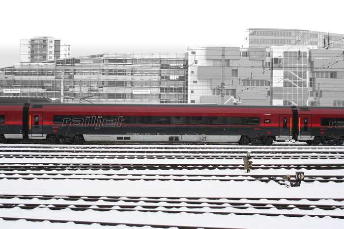 - Construction entièrement neuve du Railjet aux différentes couleurs. Représentation de l'aménagement intérieur avec passages d'intercirculation très fins.