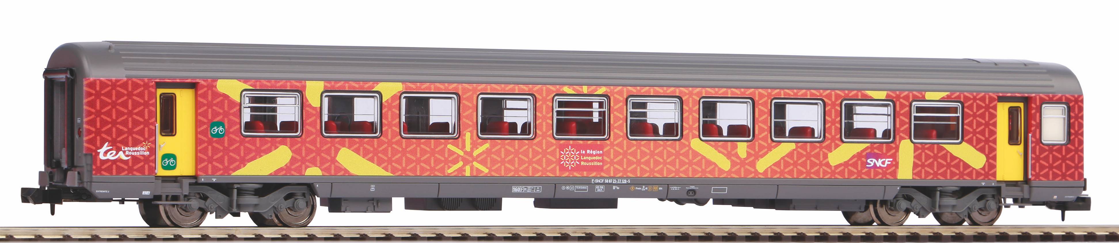 Voiture Corail 2ième classe de la SNCF en livrée languedoc, fabriquée par PIKO