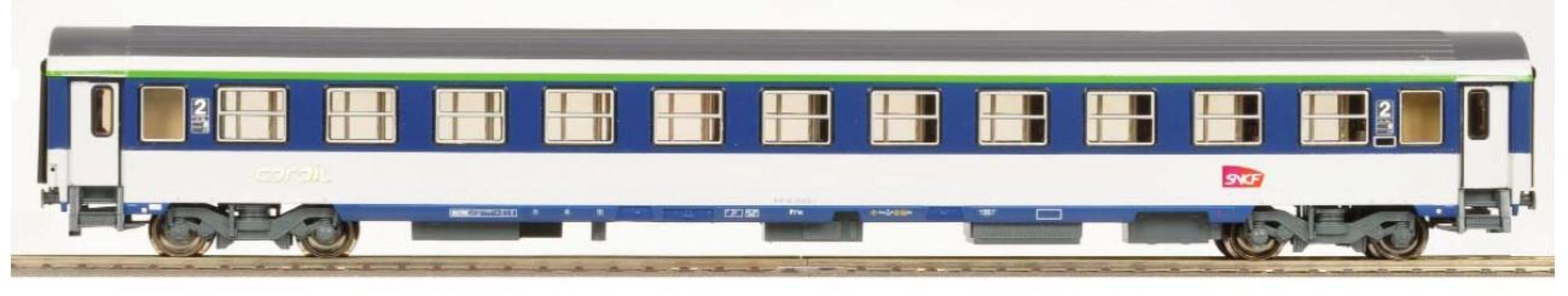 Modèle réduit Piko représentant une voiture voyageurs Corail couchette de la compagnie SNCF.