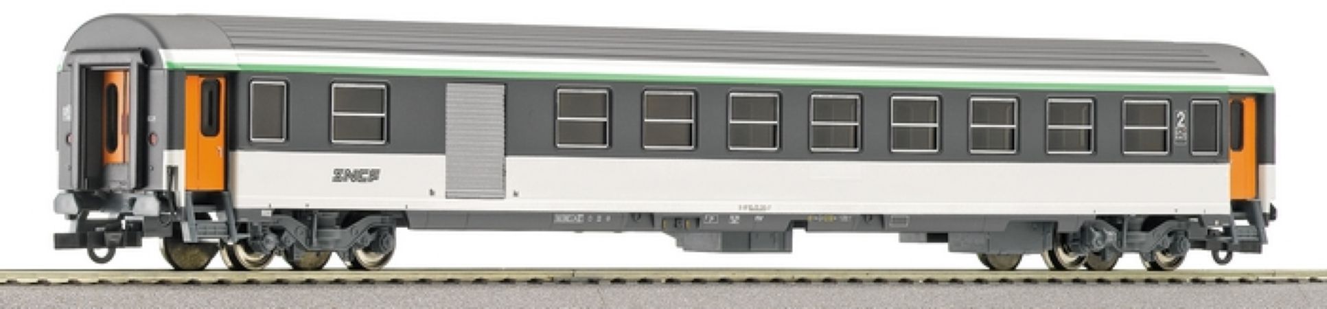 Modèle réduit ROCO d'une voiture Corail Vu mixte 2ème classe et fourgon à bagages de la SNCF en livrée Corail avec logo allégé, immatriculé N°51 87 82-70 290-7.