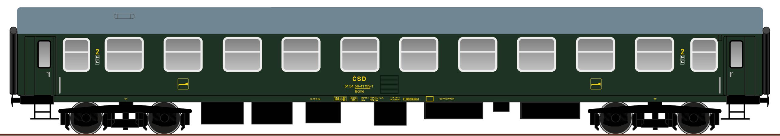 Modèle réduit de la marque Roco d'une voiture-couchette de 2e classe à couloir latéral du type UIC-Y-B / 70 des Chemins de fer Tchèques (CSD) en livrée verte.