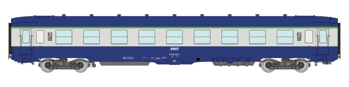 Voiture DEV AO B9c9 Bleue/Gris, SNCF logo encadré