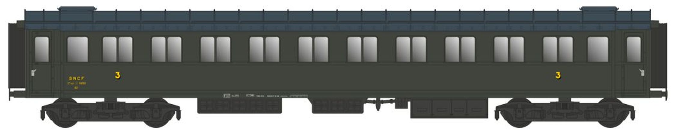Cmyf 11450 Vert 306, toit gris, SNCF, époque IIIa