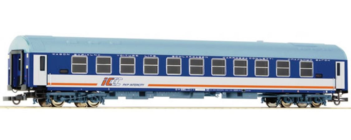 Modèle réduit Roco représentant une voiture-lits 1ère/2ème classes de type Y des Chemins de fer de l’État polonais – Intercity.