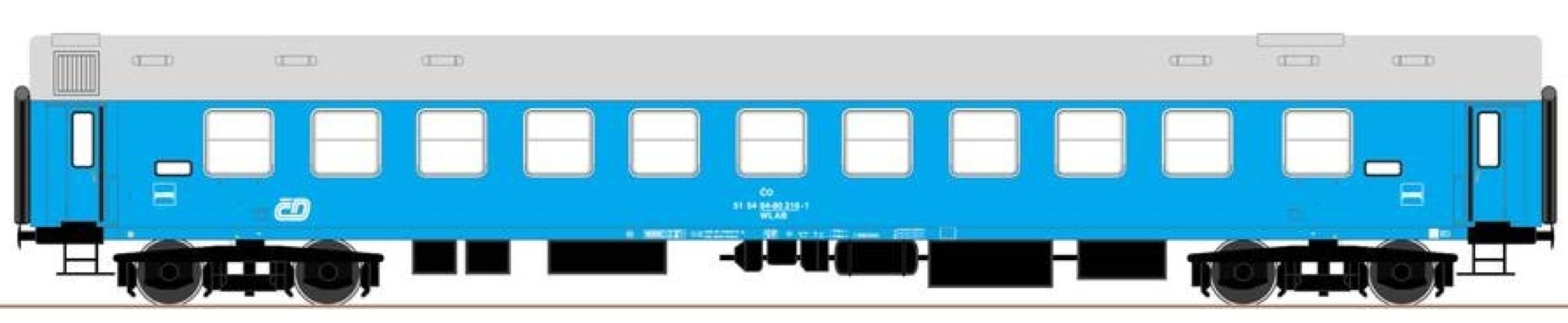 Modèle réduit ROCO d'une voiture-lits de type Y des chemins de fer tchèques (CD) de couleur bleue.