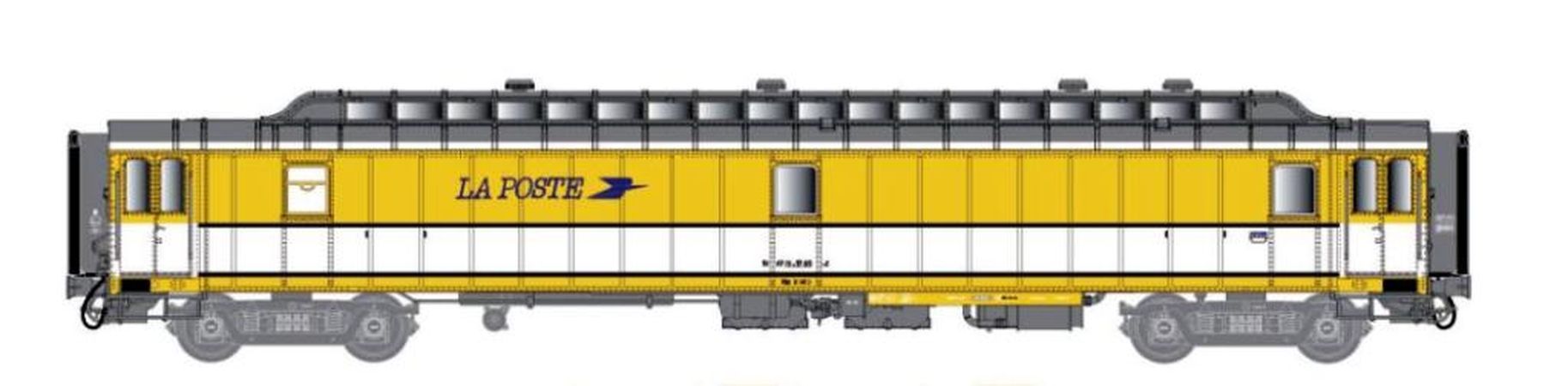 Voiture OCEM livrée jaune/blanc, toit gris, logo "La Poste", Ep. V