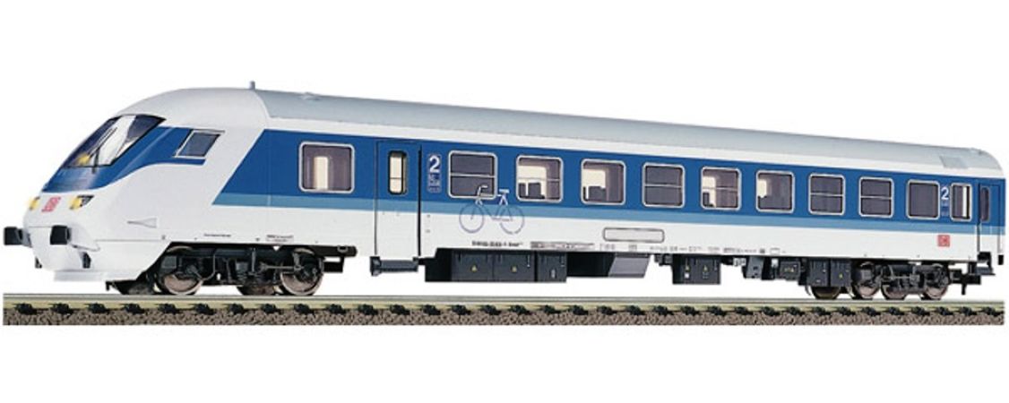 Modèle réduit Fleischmann représentant une voiture-pilote InterRegio 2ème classe de type Bimdzf 269.0, de la DB AG pour l’utilisation de trains InterRegio, DB AG. Série spéciale : « 20 ans de la DB AG ». Avec le logo de la DB AG.