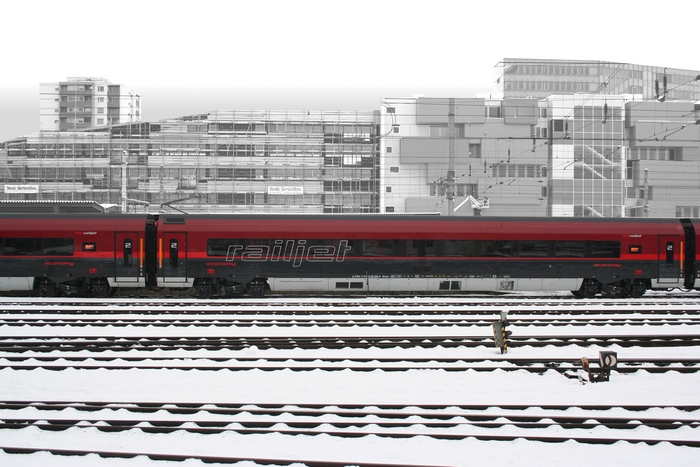 Modèle réduit ROCO d'une voiture "économique" à couloir central du Railjet des Chemins de fer autrichiens (ÖBB). Etat de service actuel. Relations internationales de haute gamme. Construction entièrement neuve du Railjet aux différentes couleurs. Représentation de l'aménagement intérieur, passages d'intercirculation très fins. Immatriculation correcte correspondant à la rame "Spirit of Salzburg".