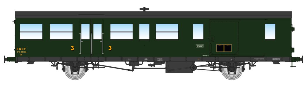 Voiture Sud-Ouest modernisée, SNCF, 3ème classe/fourgon