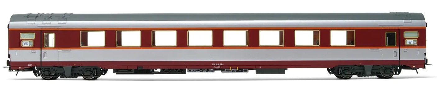 Retrouvez chez Easy-Miniatures, sous la référence HJ4171, cette voiture A8tu SNCF en livrée Grand Confort TEE Le Capitole permettant de compléter les coffrets HJ4168 et HJ4169.
