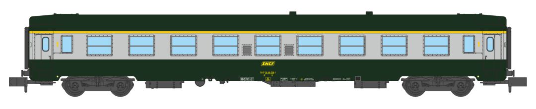 Voiture UIC A9 Vert/ALU Livrée 160 Logo jaune encadré Ep.IV