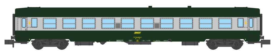 Voiture UIC B10 Vert/ALU Livrée 160 Logo jaune encadré Ep.IV