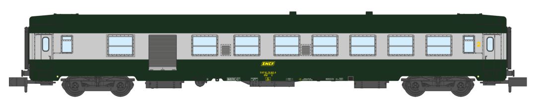 Voiture UIC B5D Vert/ALU Livrée 160 Logo jaune encadré Ep.IV