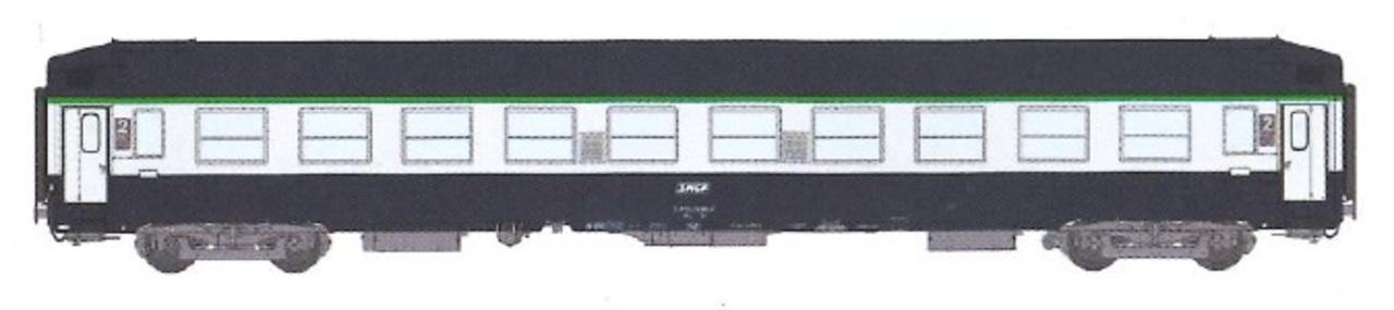 Voiture UIC couchettes bleu / gris béton, Logo encadré blanc, toit haut