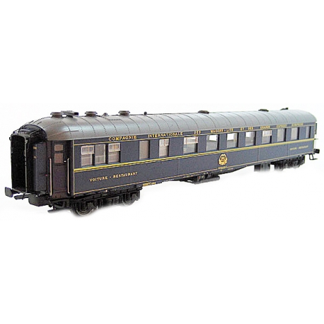 Voiture voyageurs CIWL WR 56 places livrée bleue 1968 ex. Mistral UIC avec monogramme et bogies schlieren n°51 87 88-80 569-6 Epoque IV