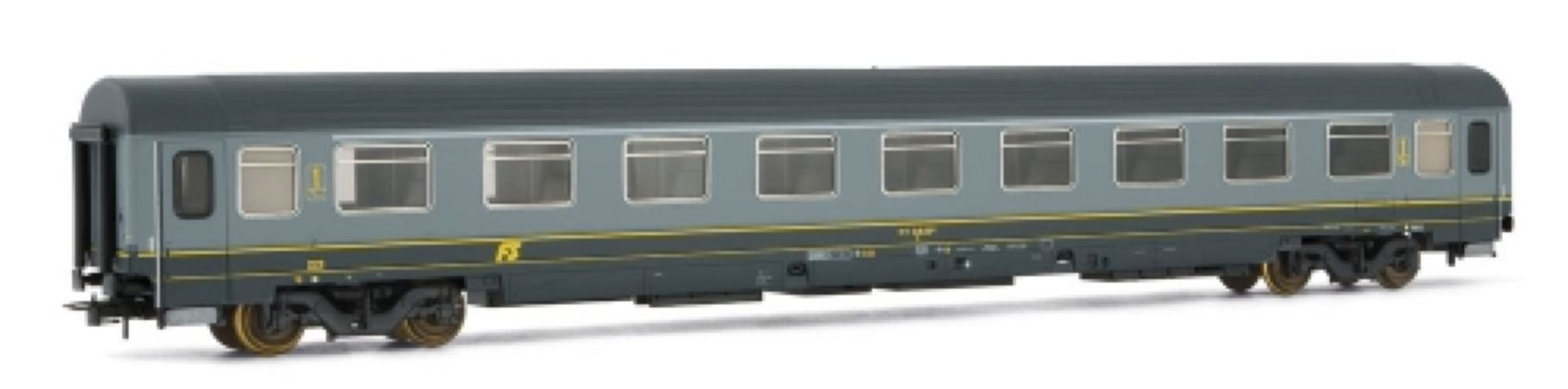 Modèle réduit RIVAROSSI finement détaillé d'une voiture voyageurs type Z, 1ère classe, des FS en couleur grise.
