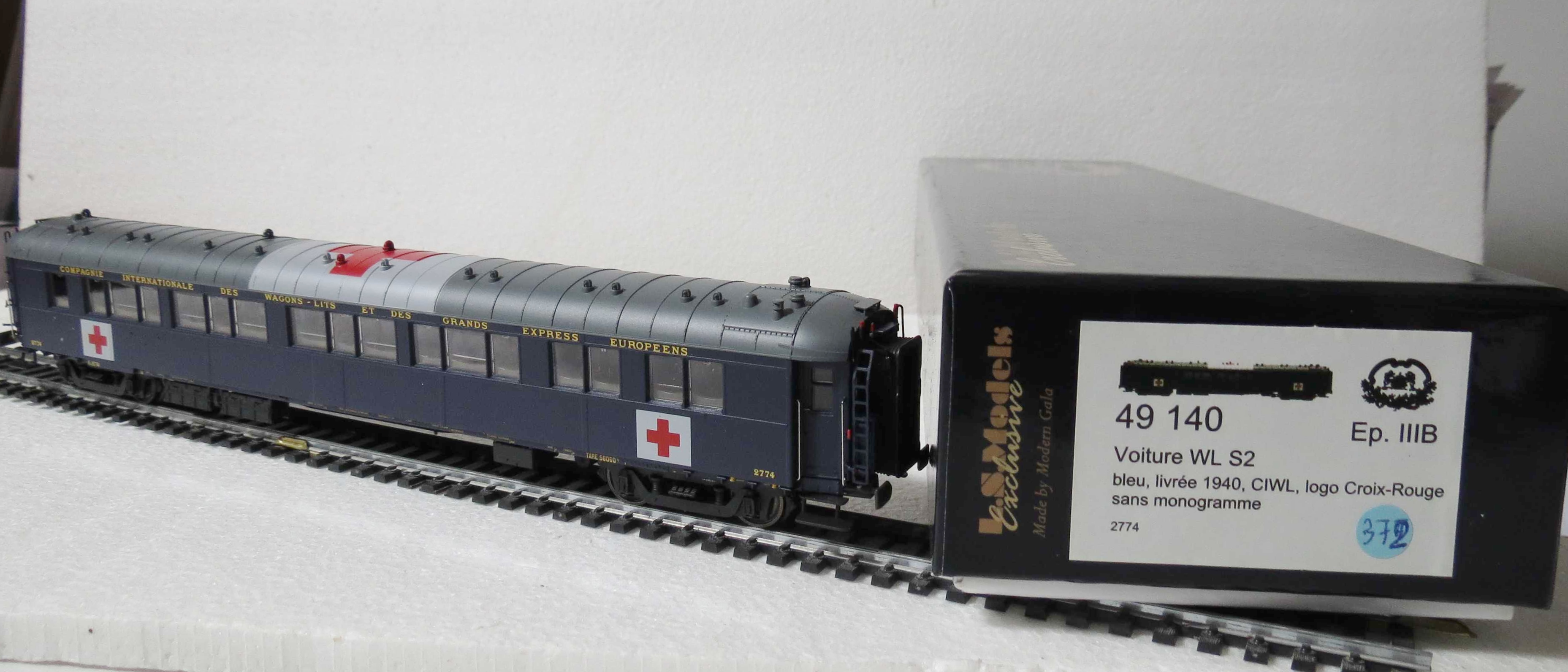 Voiture voyageurs WL S2 bleu, livrée 1940, CIWL, logo Croix-Rouge