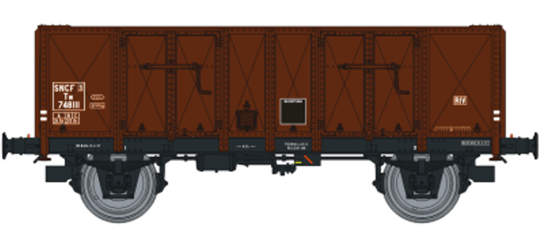 Caractéristique : Wagon Type B Tôlé, freiné, boites d’essieux à coussinets, roues pleines N°748111