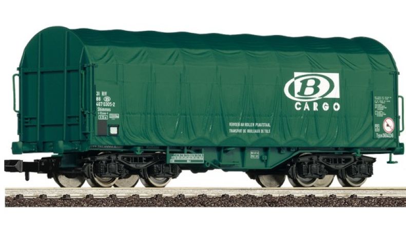 Modèle réduit de la marque FLEISCHMANN d'un wagon à bâches coulissantes Shimmns SNCB Cargo