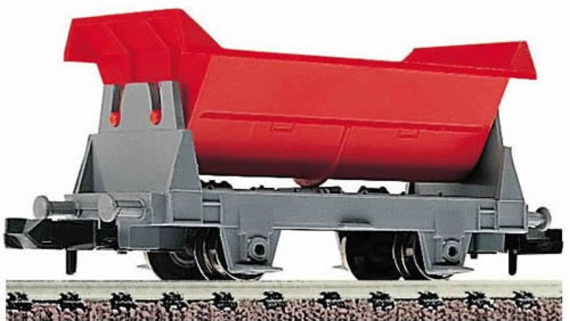 Sur ce wagon Fleischmann réf 8500, la benne est amovible et elle bascule en outre des 2 cotés, rendant donc possible le déchargement des 2 cotés.